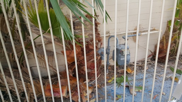 우리가 모르는 사이에 자라버린 Palm tree 하나가 Gas meter를 짓누르며 밀어내고 있었습니다.